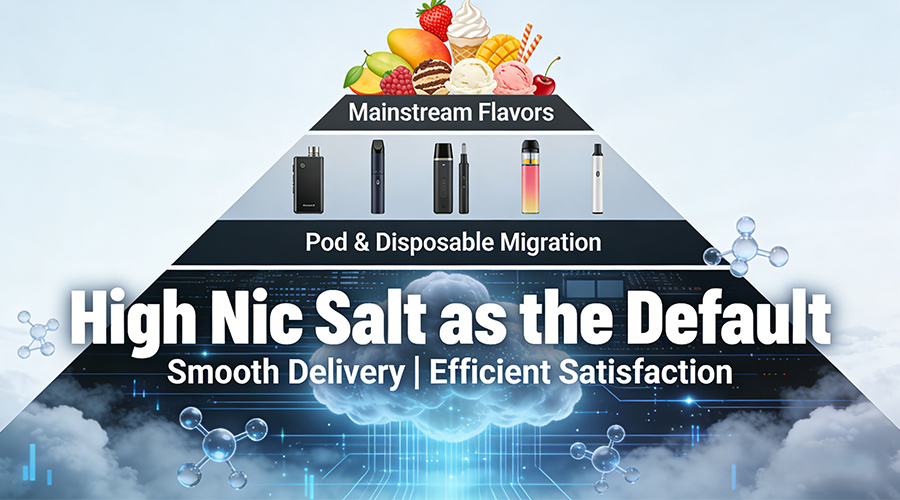 2. High-Nicotine Salts as the New Standard Default choice for Pod and disposable devices → Smooth throat hit and efficient delivery are the key advantages